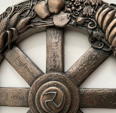If you have an altar (or several) dress one to mark the change of season. Autumnal colours, seasonal finds such as acorns; symbols to mark the change of seasons or to celebrate the spirits of the season. I have a small seasonal altar with a “Wheel of the Year” plaque I turn to mark each tide, draw an oracle card for the season, and place a statue with a seasonal offering. Seasonal altars can be as big or small as you like, just make sure it has meaning to you.