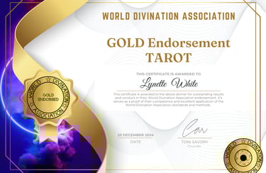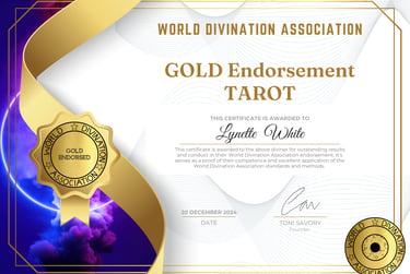 I am a Tarot Reader with over twenty years of experience, three years as a professional reader, and Gold Certified by the World Divination Association. I offer compassionate and clear readings where I walk you through the cards, and how they apply to your question. A Tarot Reading with me offers up insights and new ways to look at a question or situation, dealing in possibilities and options. Nothing is ever one hundred percent set in stone but a Reading can provide clarity, peace of mind, and advice.