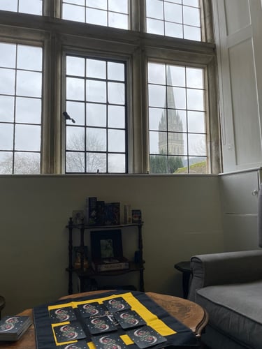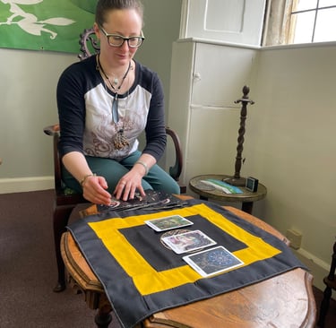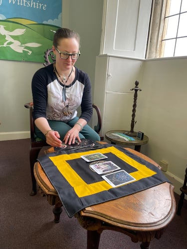 Sessions offered at my office in The Wardrobe/Rifles Museum (within Salisbury Cathedral Close) to guide you on your reading journey. From introductory sessions, help getting to know a new deck, or how to phrase questions. Sessions offered at my £50 hourly rate. Choose one-on-one coaching or you can split the cost by inviting up to three friends. Email or use the enquiry box below to find out more.